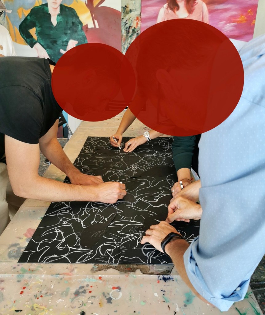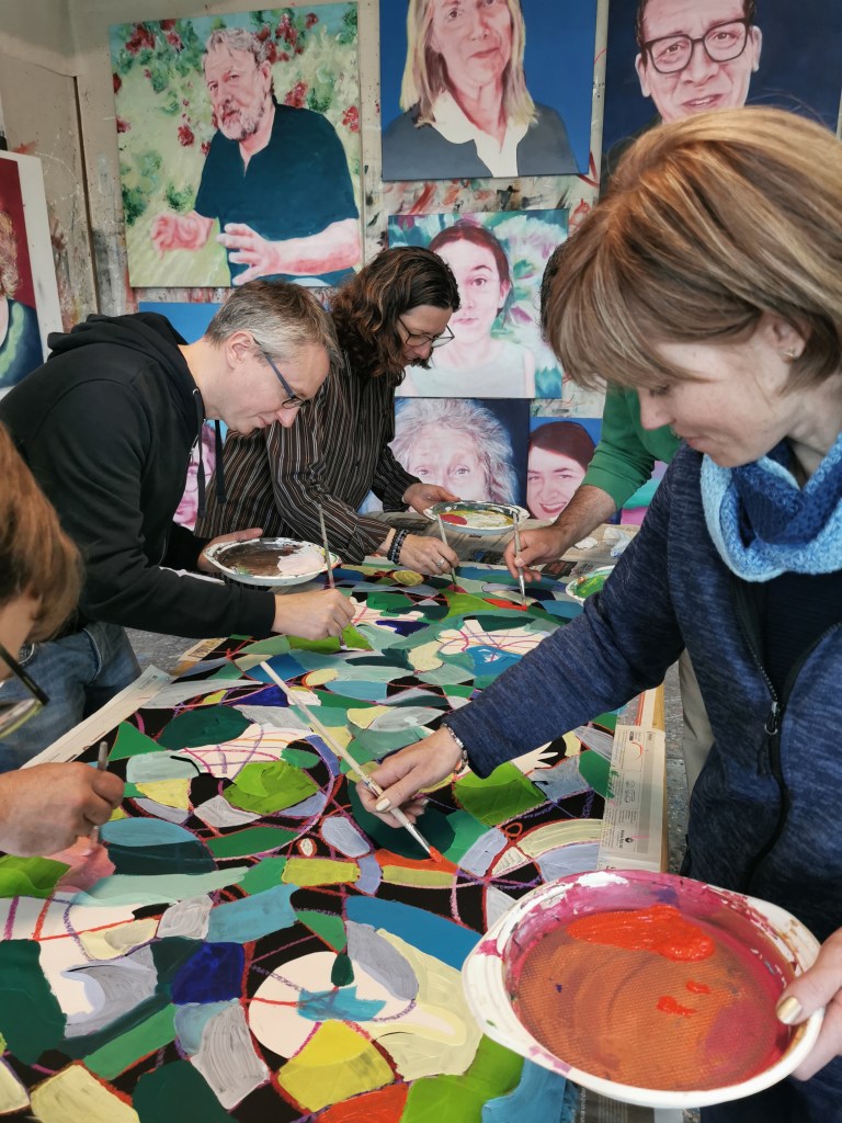 Die syntaktisch hypnosystemischen Entwicklungsberater:innen von Trigon waren nun schon zum zweiten Mal bei mir im Atelier. Ein herzhaft schaffiger Workshop in Vorbereitung der Tagung im Herbst.