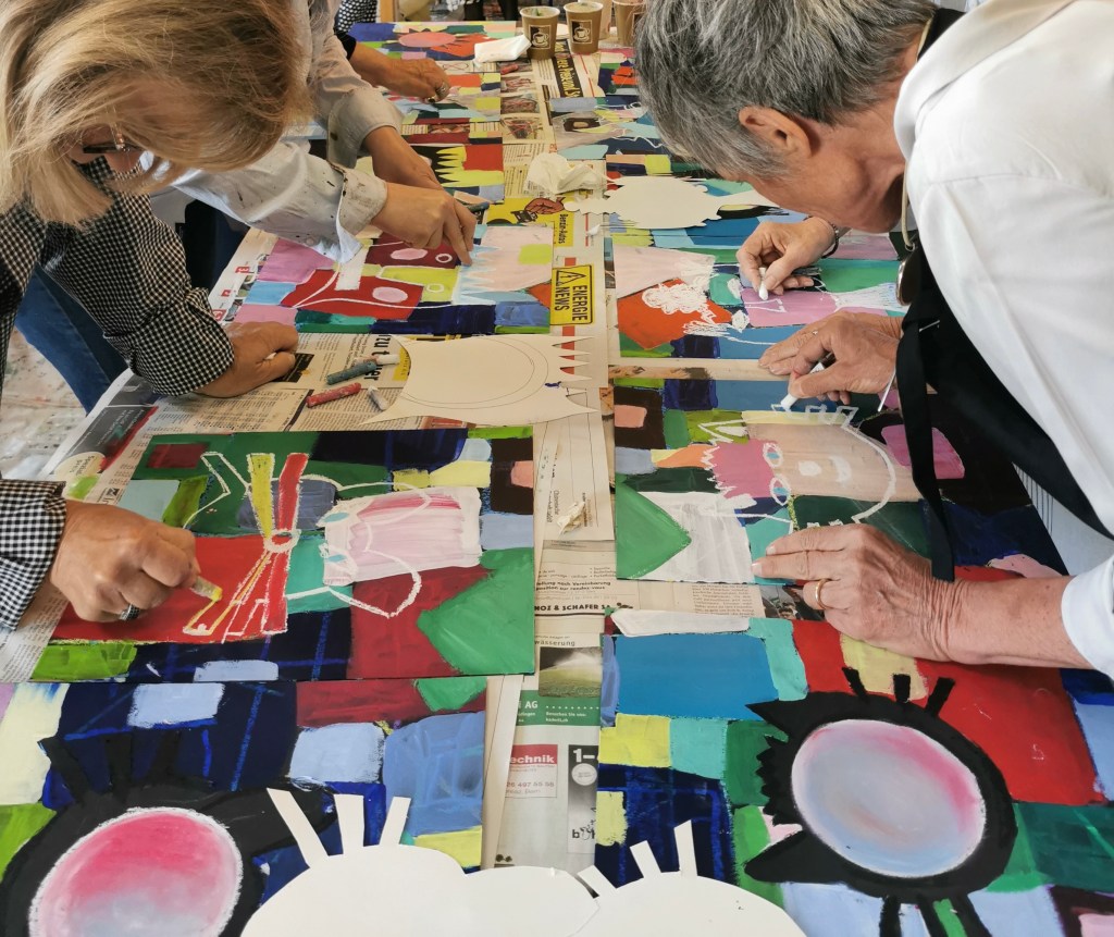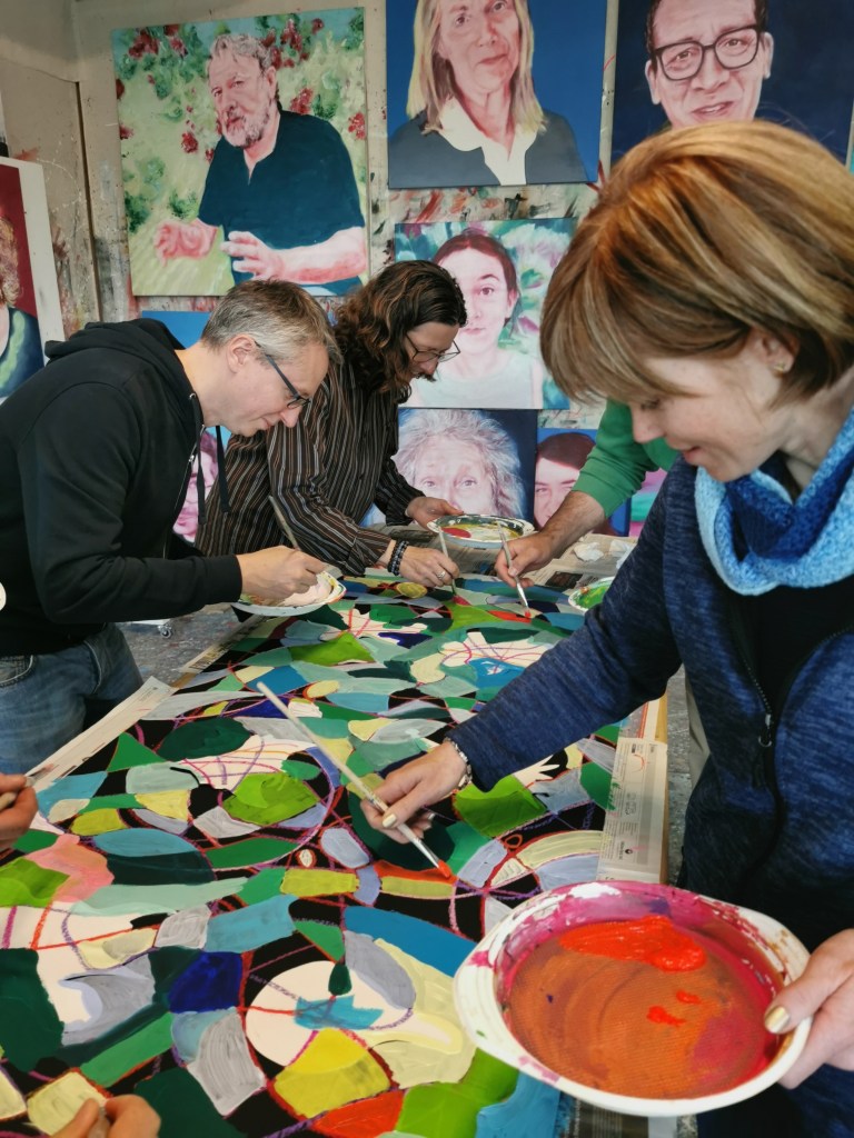 Das gemeinsame, entspannte, sinnliche Schaffen an einem Bild, das Schritt für Schritt Entwickeln, das Zusammenspiel unterschiedlicher Generationen, unterschiedlicher Ansichten und zu guter Letzt das Erstaunen über das gemeinsam geschaffene Bild machen diese Workshops zu unvergesslichen Erlebnissen.