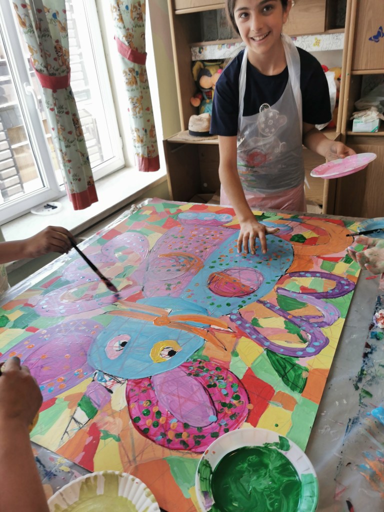 Kurz darauf durfte ich im Creaviva mit einer Gruppe ukrainischer Flüchtlingskinder einen Workshop durchführen.