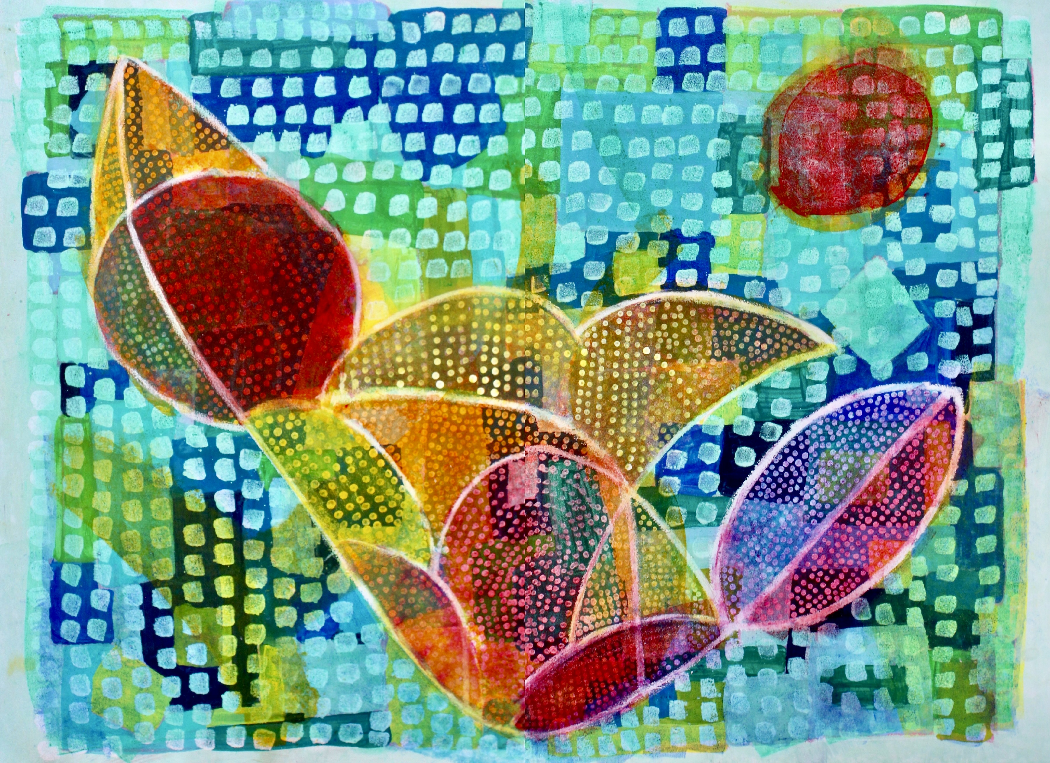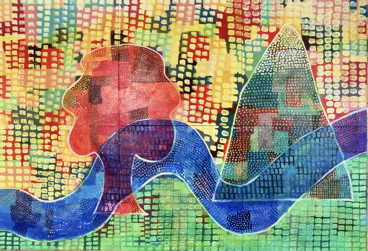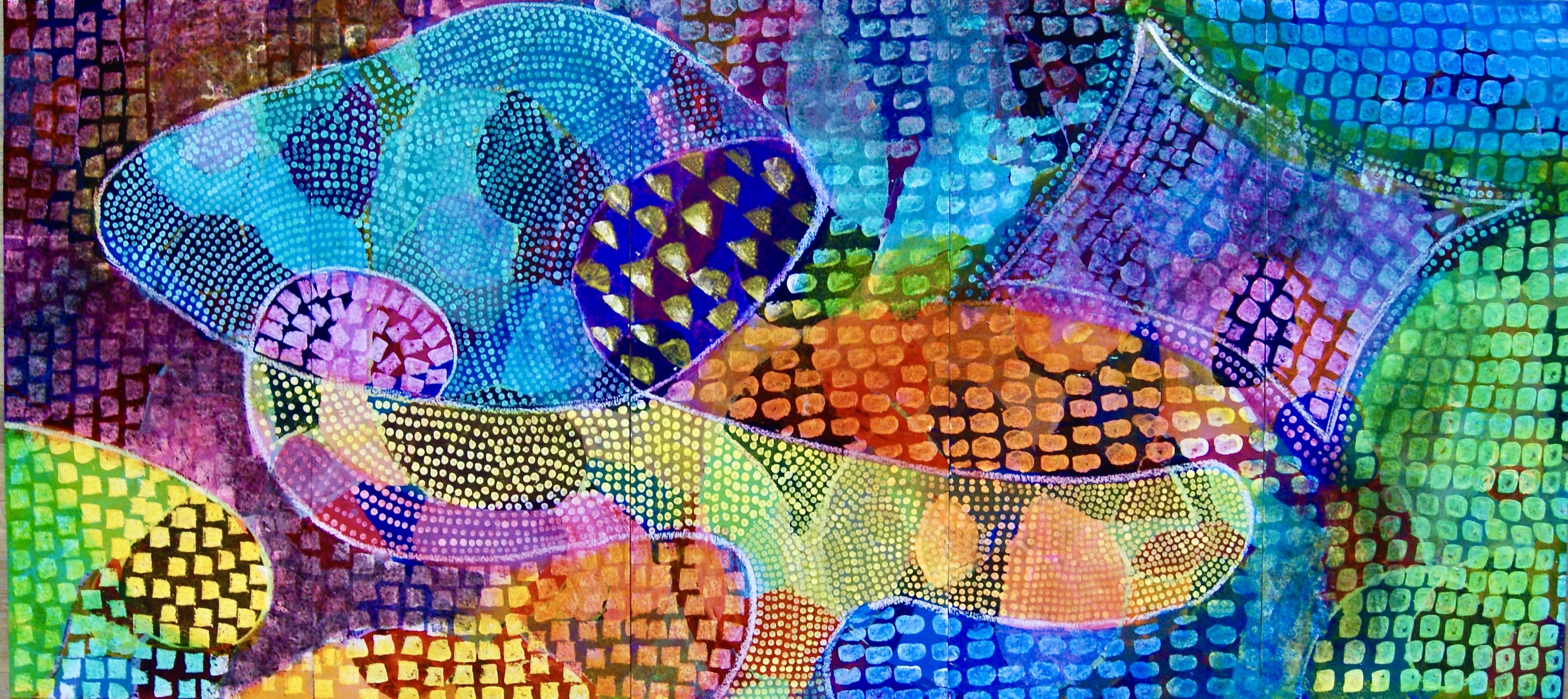 Zurück beim Workshop wurden wir sehr klar zu den nächsten technischen Schritten geführt. Für den letzten Schritt vom Individuellen wieder in das Gemeinsame fehlte aus meiner Sicht genügend Zeit. Da hier die Überraschungen entstehen und es etwas Mut braucht mit Farbe über das Bild zu rollen, hätte ich gerne noch ein bisschen langsamer gearbeitet.