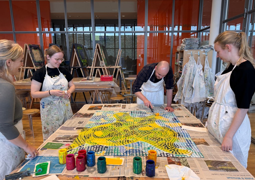 Dabei haben die Teilnehmenden aufgrund einer klaren Struktur und Vorgehensweise künstlerisch das Wesen des Schöpferischen erkundet und erstaunliche Kunstwerke und Erkenntnisse geschaffen!‘