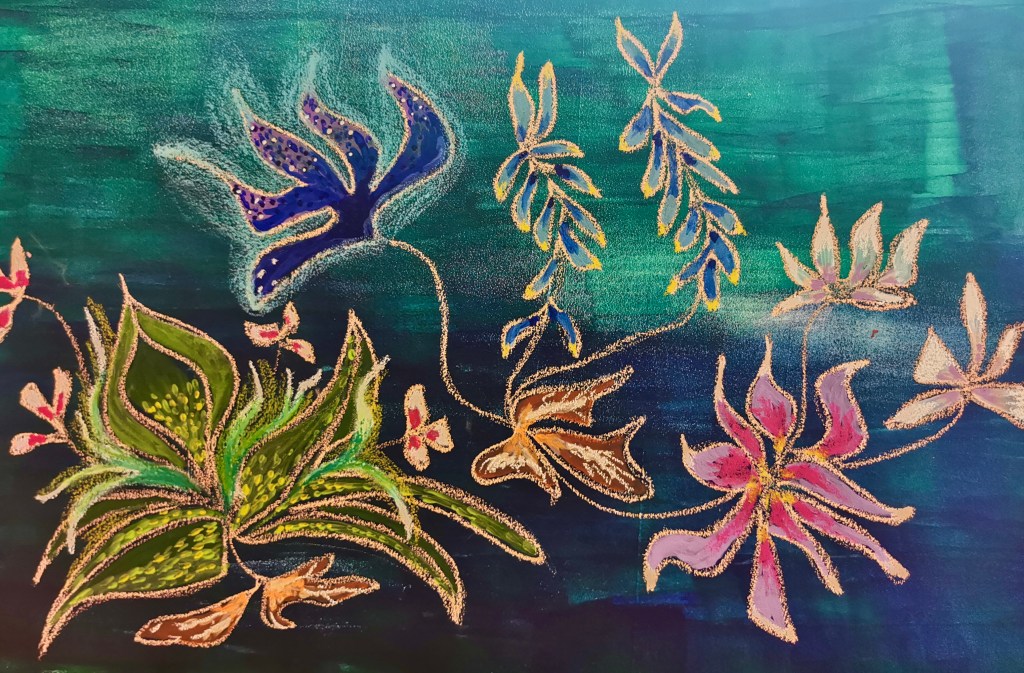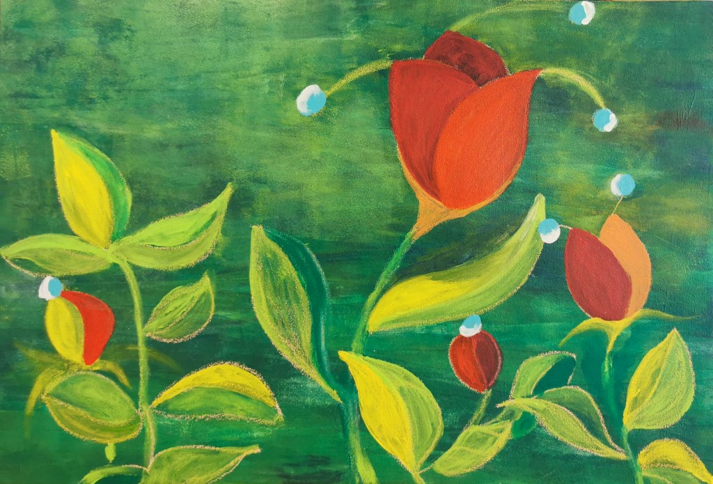 … wir arbeiten mit unterschiedlichen Materialien, hauptsächlich Acryl und Neopastel.